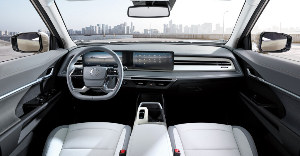 En cuanto a diseño, la Torres Hybrid mantiene el sello estético de KGM bajo el concepto “Powered by Toughness”. Destacan su parrilla vertical con luces LED inspiradas en la constelación Osa Mayor, su carrocería robusta y un interior amplio con acabados en cuero, iluminación ambiental con 32 combinaciones de color y un panel panorámico compuesto por dos pantallas de 12.3 pulgadas que integran clúster digital y sistema multimedia.