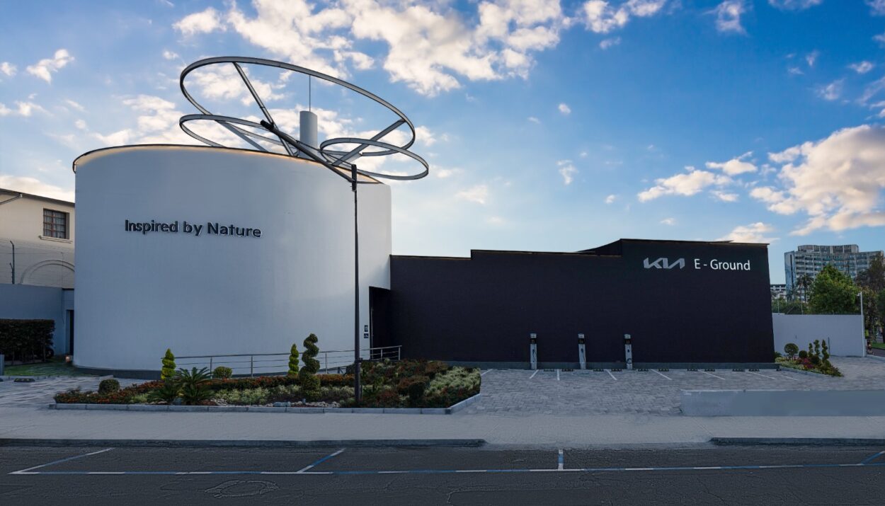 Ubicado en Quito, Ecuador, Kia E-Ground es un centro experiencial de aproximadamente 1.400 metros cuadrados diseñado para materializar la visión global de la marca en torno a la electromovilidad. El espacio refleja la filosofía de diseño de Kia, conocida como “Opposites United”, que busca armonizar conceptos aparentemente opuestos —como naturaleza y tecnología— en una experiencia coherente e inmersiva.