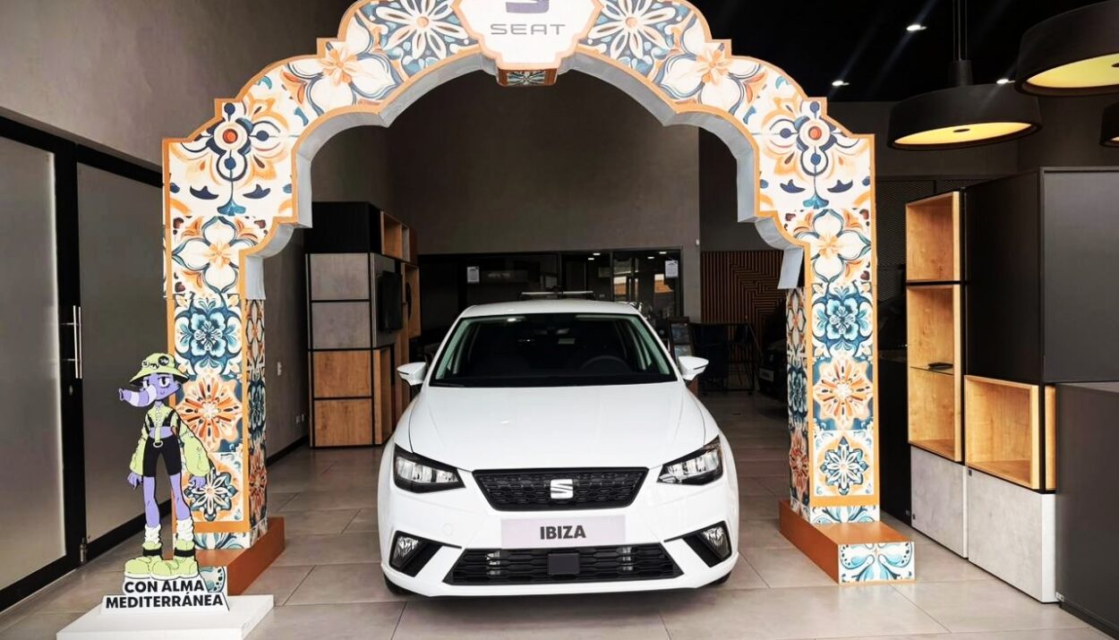 Los concesionarios SEAT se transforman en escenarios llenos de arte, color y diseño. Elementos como arcos decorativos con azulejos inspirados en la arquitectura mediterránea acompañan a los vehículos, creando una experiencia visual envolvente. De esta manera, cada vitrina se convierte en un punto de encuentro entre movilidad, cultura y expresión artística.